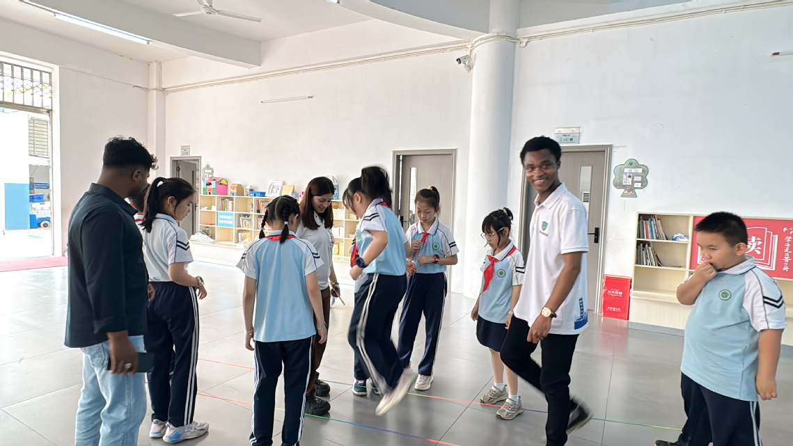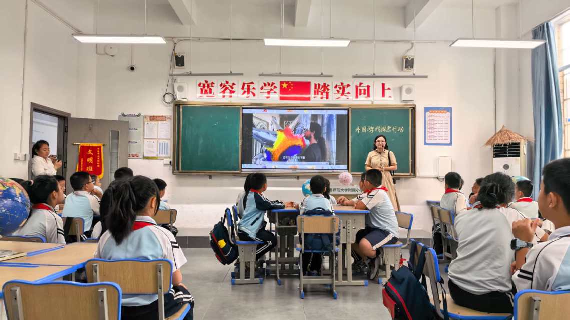 随后,调研组深入课堂观摩展示课。爱爱啦 国际教育学院留学生共同参与服饰研究和游戏互动,林莉花老师执教《世界服饰欣赏》,以多元服饰文化为载体,融合审美鉴赏与文化理解,引导学生感受世界服饰之美,培育文化包容意识;黄果植老师执教《我是地球村小公民—— 从游戏看世界》,以趣味游戏为切入点,串联不同国家的经典游戏与文化内涵,让学生在体验中学习、在合作中探究,充分体现 “以生为本、五育融合” 的教学理念。课堂氛围轻松活跃,学生参与度高,获得调研组一致认可。